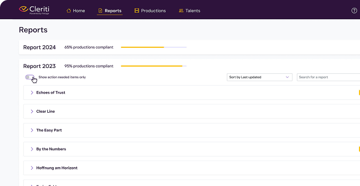 Cleriti is trusted by industry innovators, thanks to its foundation built on the deep expertise of Fintage House and top copyright lawyers. The platform provides a secure, European-wide solution for transparency reporting, simplifying compliance within the audiovisual industry.